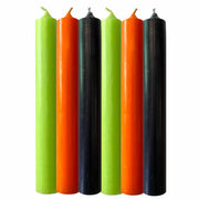 A set of six dinner candles in classic Halloween colours — two orange, two green, and two black — designed to bring a little spooky fun to your table.