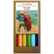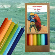 A set of six dinner candles inspired by the joyful, vibrant colours of Van Gogh’s Two Lovers. Bright reds, ochres, fresh greens, and soft blues echo the warmth and energy of this tender sketch — a moment of love captured in colour.