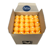 Our short length candle is very useful for your dinner table. It is high enough to cast a warm glow across the table without getting in the way. And with 4 hours burn time, it will burn long enough to accompany any dining event without any problems.
